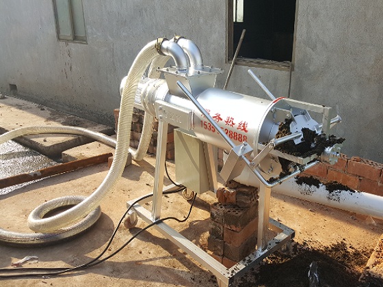 用液下泵將原糞便提高送往牛糞處理機內,擠壓成型絞龍將糞水慢慢引向人體正前方,另外不斷提升外緣的工作壓力,驅使原材料中的水份在邊壓帶濾的功效下擠壓網篩,排出排水管道。牛糞處理機的工作中是持續的,其原材料持續的提高至人體內,外緣的工作壓力持續擴大,當大到一定水平時,就將倒料口頂開,擠壓擠壓成型口,做到擠壓成型進料的目地。假如注入的排泄物水過多也會經溢液管排在原化糞池中也具有了拌和的功效,經螺旋式擠壓成型過慮分離出來出的汙水可立即配送至沉砂池等。以便把握進料的速度水分含量,能夠 調整服務器正下方的平衡塊,以做到令人滿意適度的含水量。